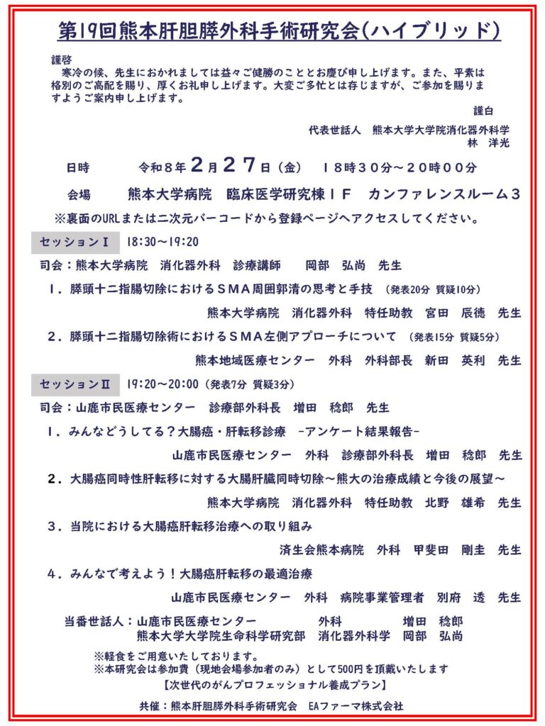 【熊本】 第19回熊本肝胆膵外科手術研究会(2月27日開催)
